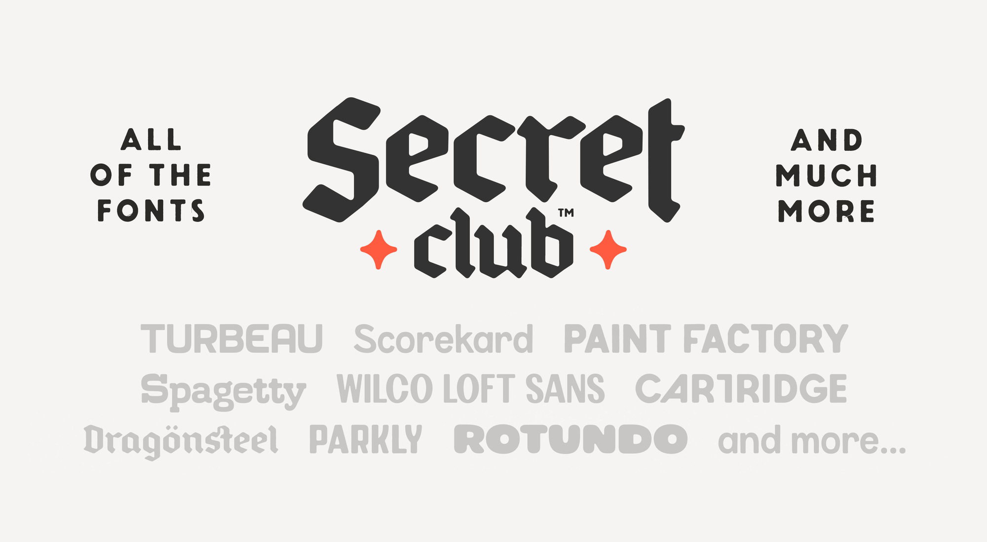 I write to you today with a quick—but impactful—update to our Secret Club™ offering to kick off the new year. Starting today, an annual SC subscription will include access to our entire font library, as well as any future releases while you're a member.