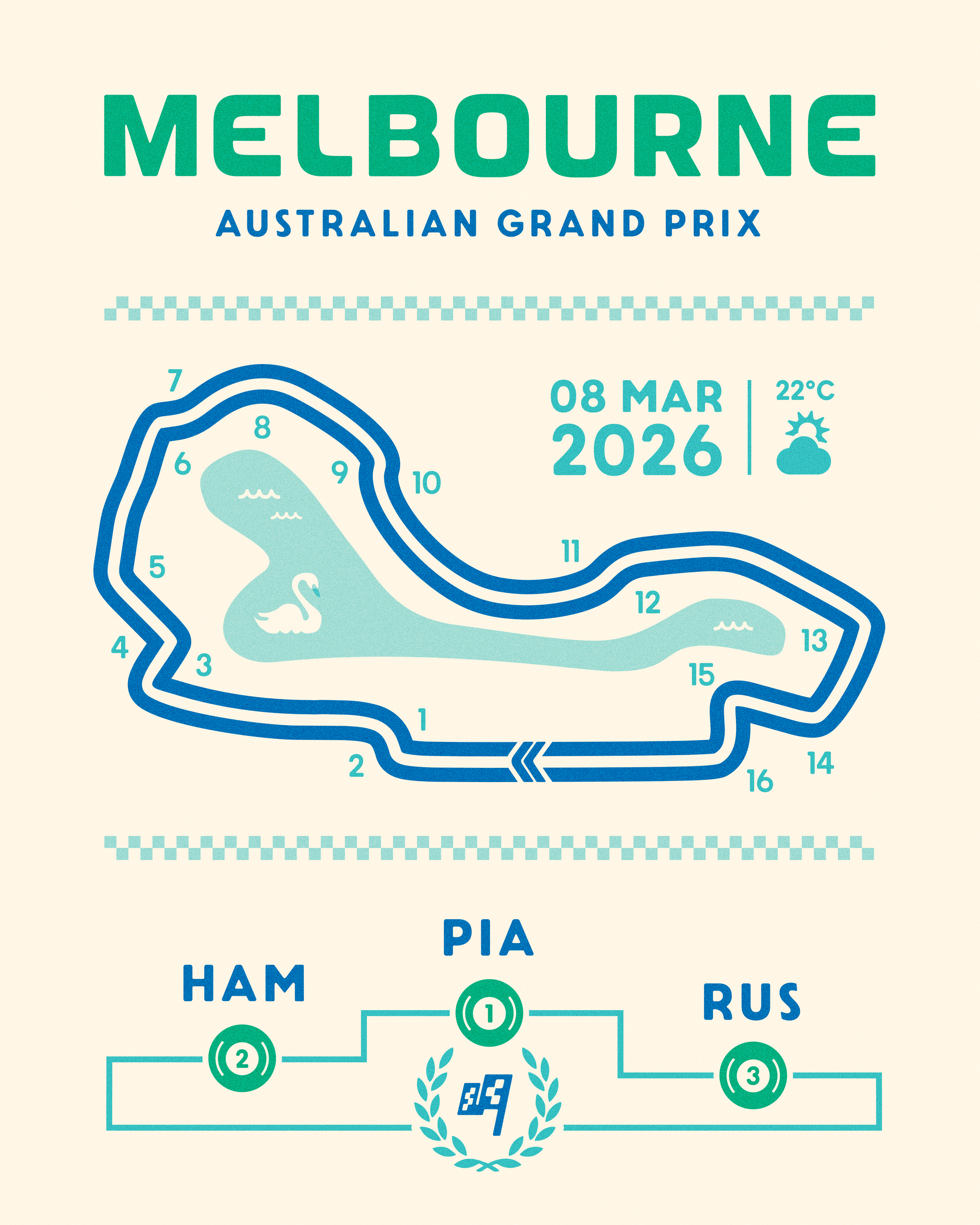 I've written before about what a nice distraction Formula 1 has been for me, and how it so neatly combines all sorts of interests into one. The 2026 season kicks off in Australia this weekend, so here is my final podium prediction for those that follow F1. I'm tentatively committing to creating a poster like this for each of the 24 races this year—actually 2 for each race unless I nail the podium prediction! You can follow my tiny Sans Prix experiment if you're into racing stuff.
